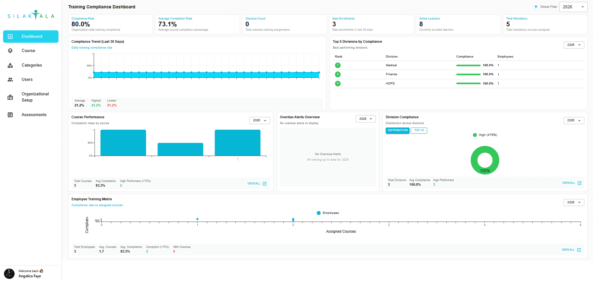 SilakTala is an enterprise learning management system developed for the healthcare sector to support training, staff development, and administrative efficiency. It was designed to provide a secure and scalable platform for managing learning content, tracking progress, and streamlining institutional training processes.